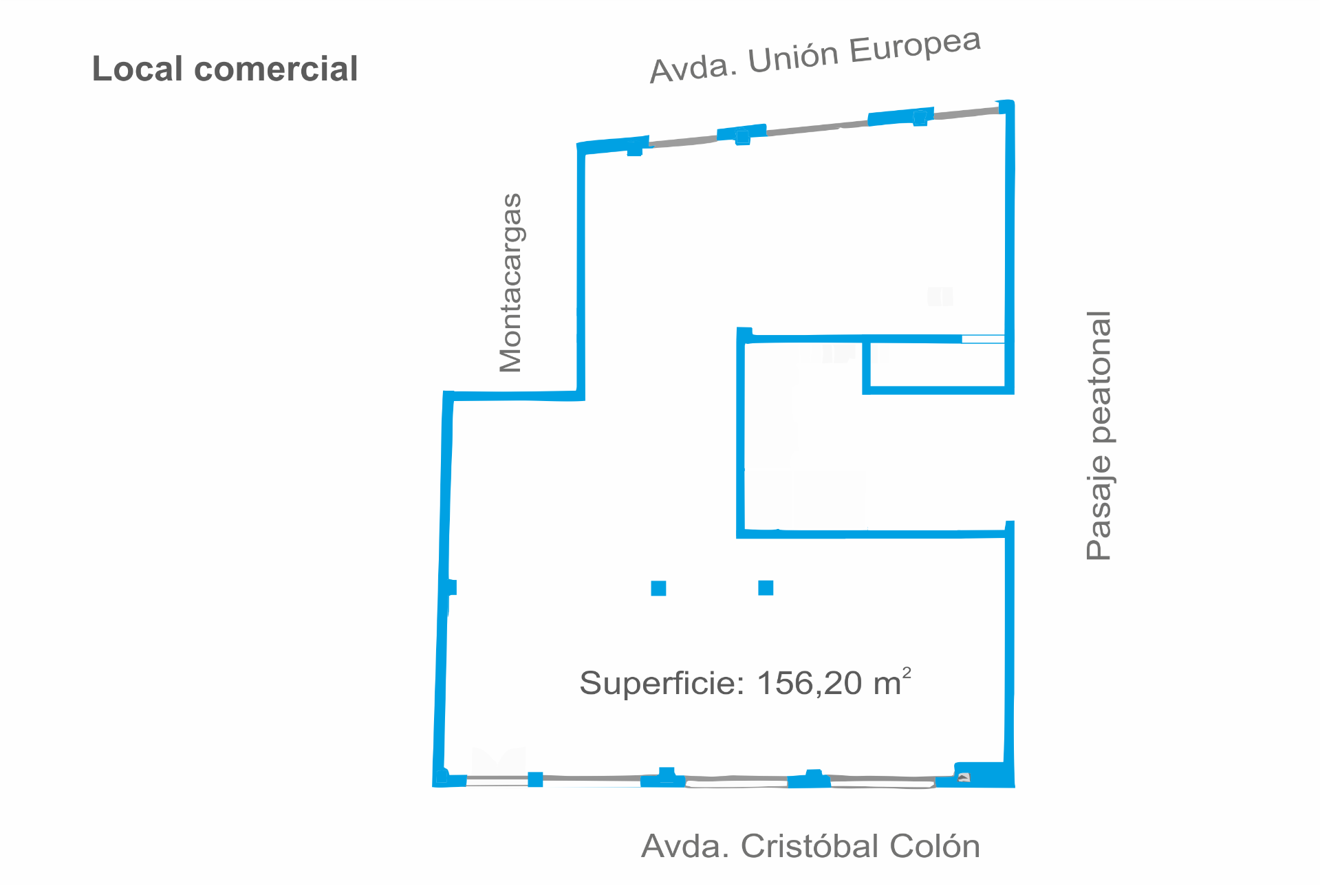 El local comercial con una superficie de 156,20 m2 se encuentra en la planta baja de un edificio residencial.En el mismo edificio se dispone de un local en planta sótano con una superficie de 297 m2, equipado con montacargas, con posibilidad de alquilarse de forma conjunta o separada del local comercial de planta baja.